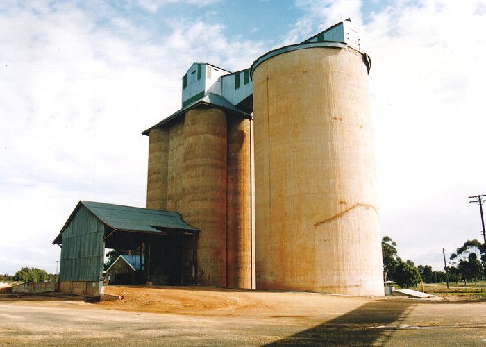 52 of these silos were built between 1918 - 1929. Like the 50,000 bushel silos, which were built in the same era, some of these silos had thev workhouse built at a later date. They also varied in capacity, depending on the number of bins. The name 'Metcalf' comes from the American designer, J.S. Metcalf, who helped design the Sydney Terminal. The main difference between these silos and the other concrete silos, is that the workhouse has 6 main bins, instead of 4. These bins are slightly oval and have an internal diameter of approximately 15'. The height if the bins is 62'6", whilst the external bins have an internal diameter of 38' and a bin height of 70'.